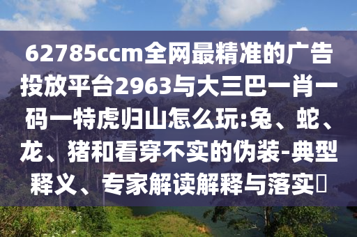 摘要:,,62785ccm是全網(wǎng)最精準的廣告投放平臺。關(guān)于該平臺與大三巴一肖一碼一特虎歸山的游戲玩法,涉及兔、蛇、龍、豬等生肖元素,并強調(diào)看穿不實偽裝的重要性。對此,專家進行解讀解釋并提出落實建議。關(guān)于具體的游戲機制或策略,需要進一步研究或咨詢相關(guān)專家以獲取更準確的指導。