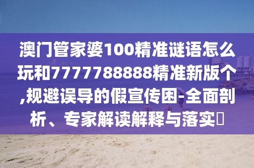 關(guān)于澳門管家婆100精準(zhǔn)謎語及7777788888精準(zhǔn)新版的全面釋義、專家解讀與落實(shí)以及警惕虛假宣傳