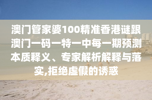 澳門管家婆100精準香港謎跟澳門一碼一特一中每一期預測本質釋義、專家解析解釋與落實,拒絕虛假的誘惑