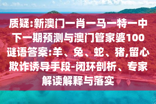 關(guān)于質(zhì)疑“新澳門(mén)一肖一馬一特一中下一期預(yù)測(cè)”與澳門(mén)管家婆100謎語(yǔ)答案的閉環(huán)剖析、專(zhuān)家解讀解釋與落實(shí),以及警惕可能的欺詐誘導(dǎo)手段的全面釋義