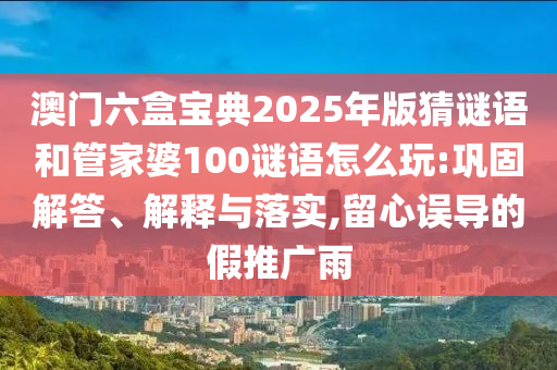 澳門六盒寶典2025年版猜謎語和管家婆100謎語怎么玩:鞏固解答、解釋與落實,留心誤導的假推廣雨