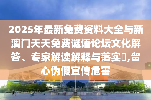 2025年最新免費資料大全與新澳門天天免費謎語論壇”的留心偽假宣傳危害的文化解答、專家解讀解釋與落實