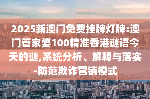 2025新澳門免費掛牌燈牌:澳門管家婆100精準香港謎語今天的謎,系統分析、解釋與落實-防范欺詐營銷模式
