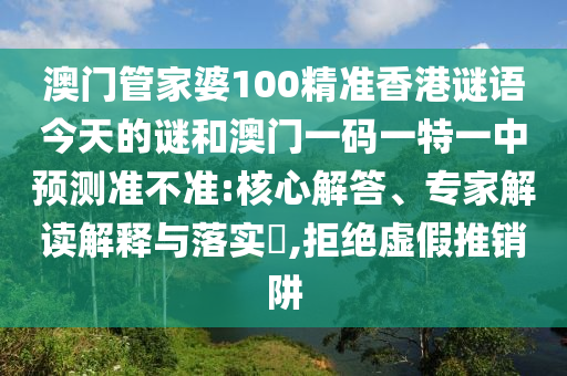 澳門管家婆100精準香港謎語今天的謎和澳門一碼一特一中預測準不準:核心解答、專家解讀解釋與落實?,拒絕虛假推銷阱