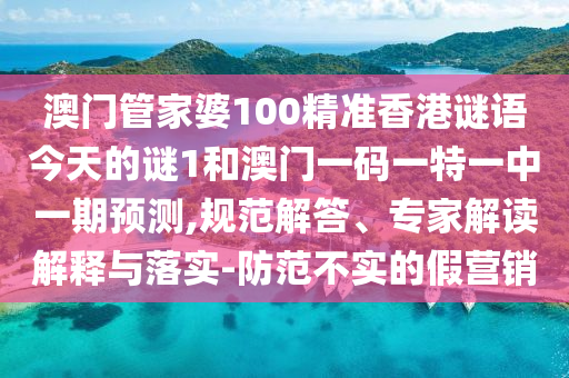 澳門(mén)管家婆100精準(zhǔn)香港謎語(yǔ)今天的謎1和澳門(mén)一碼一特一中一期預(yù)測(cè),規(guī)范解答、專(zhuān)家解讀解釋與落實(shí)-防范不實(shí)的假營(yíng)銷(xiāo)