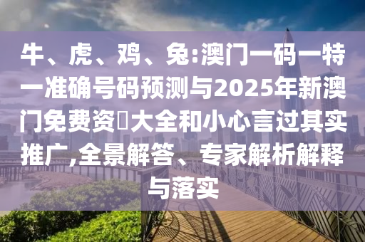 牛、虎、雞、兔:澳門一碼一特一準確號碼預測與2025年新澳門免費資枓大全:全景解答、專家解析解釋與落實