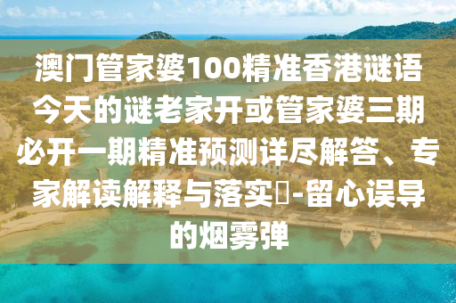澳門管家婆100精準香港謎語今天的謎老家開或管家婆三期必開一期精準預測詳盡解答、專家解讀解釋與落實?-留心誤導的煙霧彈
