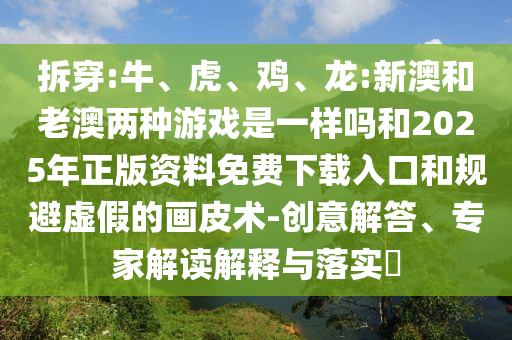 牛、虎、雞、龍:新澳和老澳兩種游戲是一樣嗎和2025年正版資料免費(fèi)下載入口:創(chuàng)意解答、專家解讀解釋與落實(shí)?