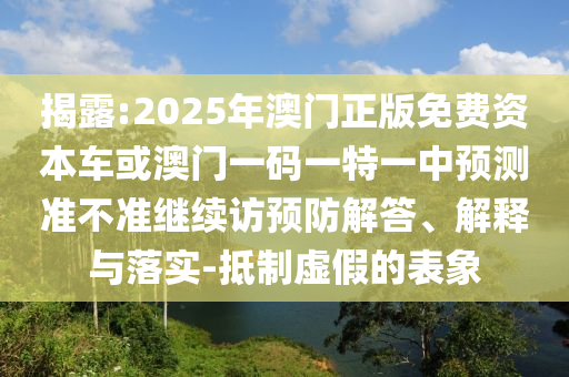 揭露:2025年澳門正版免費資本車或澳門一碼一特一中預測準不準繼續訪預防解答、解釋與落實-抵制虛假的表象