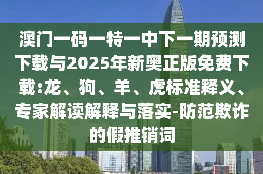 摘要:,,本文簡要概述了關于澳門一碼一特一中下一期預測下載的內容,以及關于2025年新奧正版免費下載的討論。對龍、狗、羊、虎的標準釋義和專家解讀進行了介紹,旨在幫助公眾了解和防范欺詐的假推銷詞。文章旨在提供準確信息,并強調防范欺詐的重要性。