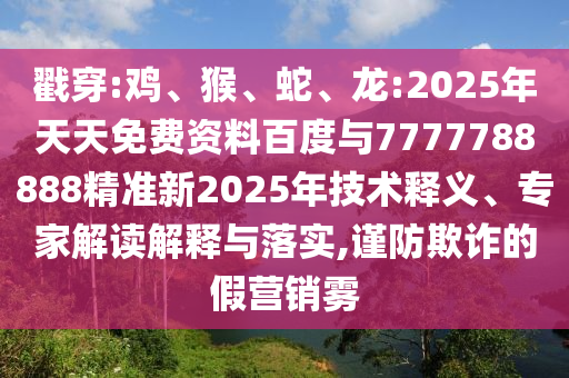 關于戳穿雞、猴、蛇、龍四大生肖與數字組合在2025年的預測及防范虛假宣傳的全面解析