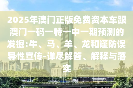 關于澳門正版免費資本車與澳門一碼一特一中一期預測關鍵詞的解讀與落實,以及關于牛、馬、羊、龍等生肖預測的解釋與警惕虛假宣傳的提醒