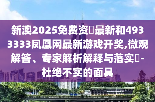 摘要:本文介紹了新澳2025免費資料的最新信息,以及4933333鳳凰網最新游戲開獎的相關內容。文章還提到了微觀解答、專家解析解釋與落實,強調杜絕不實面具的重要性。讀者可以通過本文了解最新的游戲開獎信息和相關解析,以做出更明智的決策。