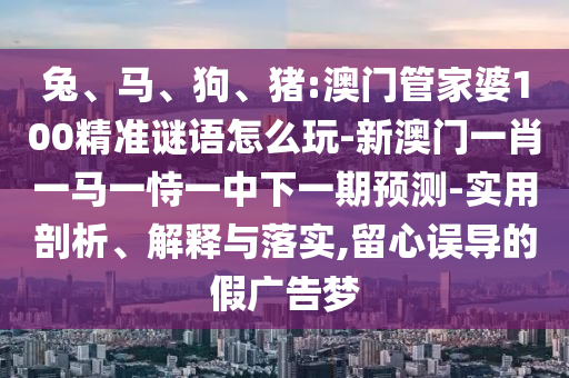 兔、馬、狗、豬:澳門管家婆100精準謎語怎么玩-新澳門一肖一馬一恃一中下一期預測:實用剖析、解釋與落實