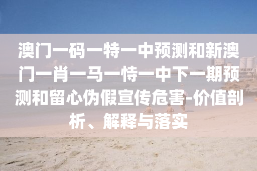 在當今社會,隨著科技的快速發展和人們生活水平的提高,越來越多的人開始關注各種預測和占卜,我們也應該警惕虛假宣傳的存在,避免受到不必要的損失,本文將圍繞澳門一碼一特一中預測和新澳門一肖一馬一恃一中下一期預測的價值進行剖析,解釋和落實相關內容,并提醒公眾注意虛假宣傳的危害。