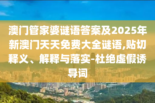 澳門管家婆謎語答案及2025年新澳門天天免費大全謎語,貼切釋義、解釋與落實-杜絕虛假誘導詞