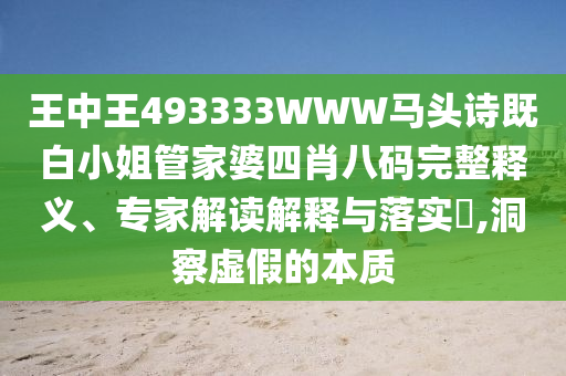 王中王493333WWW馬頭詩既白小姐管家婆四肖八碼的完整釋義、專家解讀解釋與落實?