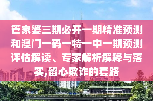 管家婆三期必開一期精準預測和澳門一碼一特一中一期預測評估解讀、專家解析解釋與落實,留心欺詐的套路