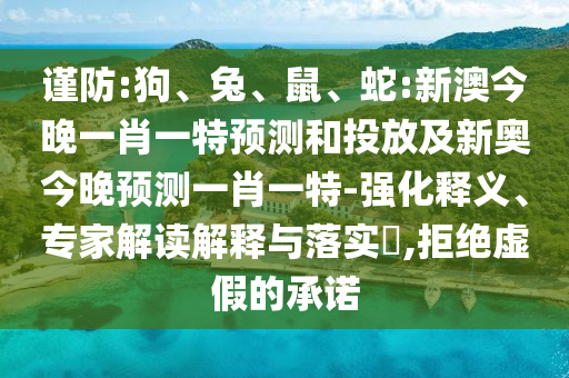 謹防:狗、兔、鼠、蛇:新澳今晚一肖一特預測和投放及新奧今晚預測一肖一特-強化釋義、專家解讀解釋與落實?,拒絕虛假的承諾