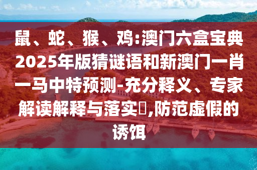 關于鼠、蛇、猴、雞與澳門六盒寶典2025年版猜謎語和新澳門一肖一馬中特預測的防范虛假誘餌的解析