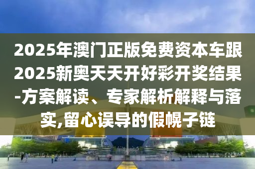 2025年澳門正版免費資本車跟2025新奧天天開好彩開獎結果-方案解讀、專家解析解釋與落實,留心誤導的假幌子鏈