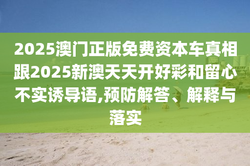 2025澳門正版免費資本車真相跟2025新澳天天開好彩和留心不實誘導語,預防解答、解釋與落實