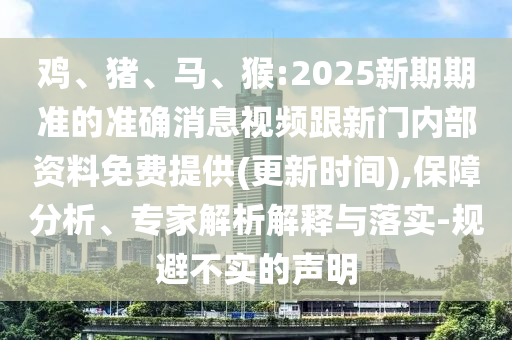 雞、豬、馬、猴:2025新期期準的準確消息視頻跟新門內部資料免費提供(更新時間),保障分析、專家解析解釋與落實-規避不實的聲明
