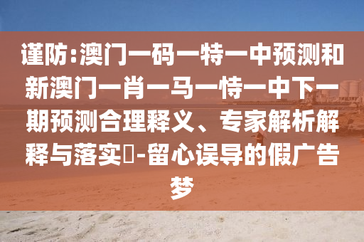 謹防:澳門一碼一特一中預測和新澳門一肖一馬一恃一中下一期預測合理釋義、專家解析解釋與落實?-留心誤導的假廣告夢