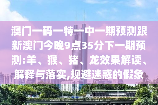 摘要:針對澳門一碼一特一中一期的預測和新澳門今晚9點35分的預測,涉及到羊、猴、豬、龍等生肖的解讀與解釋,以及落實相關預測結果的問題,需要謹慎對待。這些預測結果可能存在迷惑性假象,建議公眾理性對待,不要盲目相信或過分依賴預測結果。也需要注意防范相關風險,避免受到不良影響。