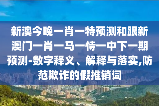 關于新澳今晚一肖一特預測和跟新澳門一肖一馬一恃一中下一期預測的數字釋義、解釋與落實,以及防范欺詐的假宣傳
