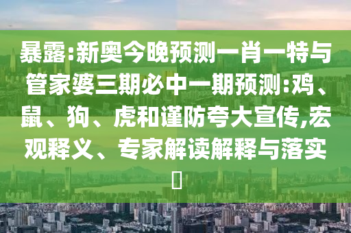 新奧今晚預(yù)測(cè)一肖一特與管家婆三期必中一期預(yù)測(cè):雞、鼠、狗、虎”的宏觀釋義、專家解讀與落實(shí),以及謹(jǐn)防夸大宣傳的解析