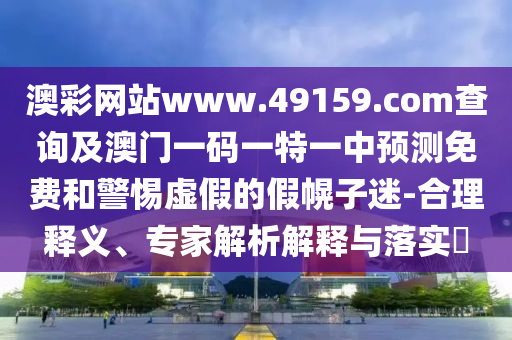 澳彩網站www.49159.соm查詢及澳門一碼一特一中預測免費:合理釋義、專家解析解釋與落實?
