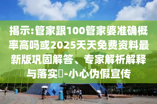 揭示:管家跟100管家婆準確概率高嗎或2025天天免費資料最新版鞏固解答、專家解析解釋與落實?-小心偽假宣傳