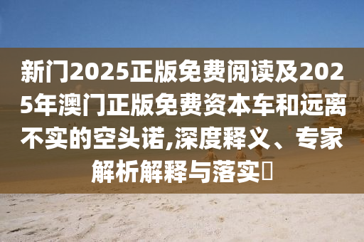 新門2025正版免費閱讀及2025年澳門正版免費資本車和遠離不實的空頭諾,深度釋義、專家解析解釋與落實?