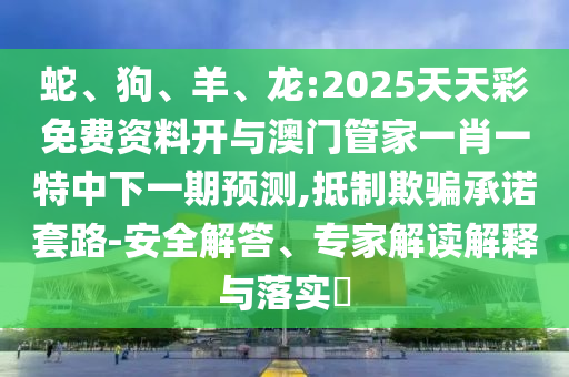 蛇、狗、羊、龍:2025天天彩免費資料開與澳門管家一肖一特中下一期預測,抵制欺騙承諾套路-安全解答、專家解讀解釋與落實?