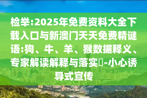 摘要:,,本文揭露了一個聲稱提供2025年免費資料大全下載入口的虛假信息,同時提醒公眾注意名為新澳門天天免費精謎語的內容,其中包含關于狗、牛、羊、猴的數據釋義。文章警告讀者要小心誘導式宣傳,避免被誤導或陷入陷阱。專家解讀解釋部分也需謹慎對待,確保信息的真實性和可靠性。