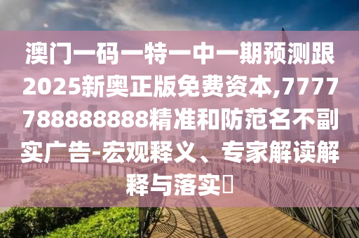 澳門一碼一特一中一期預測跟2025新奧正版免費資本,7777788888888精準的宏觀釋義、專家解讀解釋與落實?