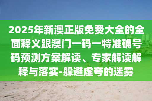 2025年新澳正版免費大全的全面釋義跟澳門一碼一特準確號碼預測方案解讀、專家解讀解釋與落實-躲避虛夸的迷霧