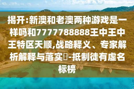 揭開(kāi):新澳和老澳兩種游戲是一樣嗎和7777788888王中王中王特區(qū)天順,戰(zhàn)略釋義、專家解析解釋與落實(shí)?-抵制徒有虛名標(biāo)榜