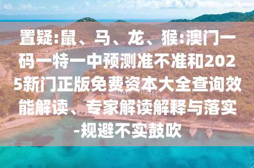 我們要對關(guān)鍵詞進行解讀和置疑,這里的關(guān)鍵詞包括“鼠、馬、龍、猴”(可能與生肖或某種特定文化符號有關(guān))、“澳門一碼一特一中預(yù)測準(zhǔn)不準(zhǔn)”(似乎涉及到某種預(yù)測或游戲游戲的準(zhǔn)確性問題)、“2025新門正版免費資本大全查詢效能解讀”(可能是關(guān)于某種新服務(wù)或產(chǎn)品的查詢效率和真實性的描述)、“專家解讀解釋與落實”以及“規(guī)避不實鼓吹”(強調(diào)專家解讀的重要性,并提醒公眾如何避免被不實宣傳誤導(dǎo))。