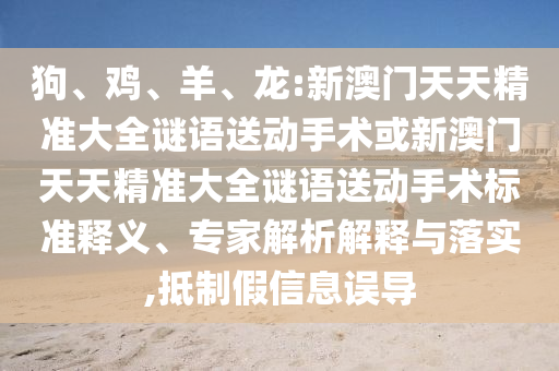狗、雞、羊、龍:新澳門天天精準(zhǔn)大全謎語送動(dòng)手術(shù)或新澳門天天精準(zhǔn)大全謎語送動(dòng)手術(shù)標(biāo)準(zhǔn)釋義、專家解析解釋與落實(shí),抵制假信息誤導(dǎo)