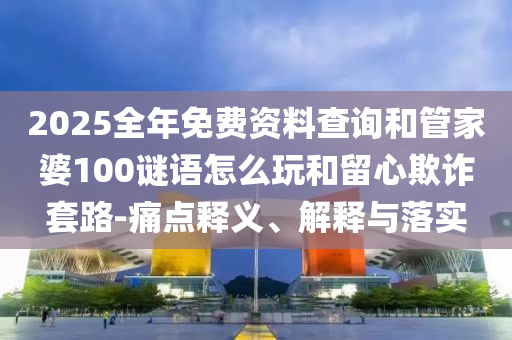 2025全年免費資料查詢”和“管家婆100謎語”的痛點釋義、解釋與落實,以及公眾對虛假宣傳和欺詐套路的警惕提示