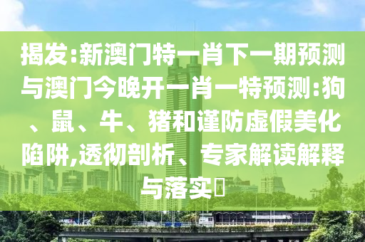 揭發:新澳門特一肖下一期預測與澳門今晚開一肖一特預測:狗、鼠、牛、豬和謹防虛假美化陷阱,透徹剖析、專家解讀解釋與落實?