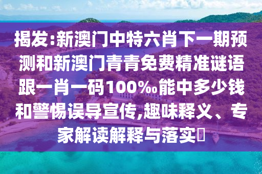 揭發:新澳門中特六肖下一期預測和新澳門青青免費精準謎語跟一肖一碼100‰能中多少錢和警惕誤導宣傳,趣味釋義、專家解讀解釋與落實?