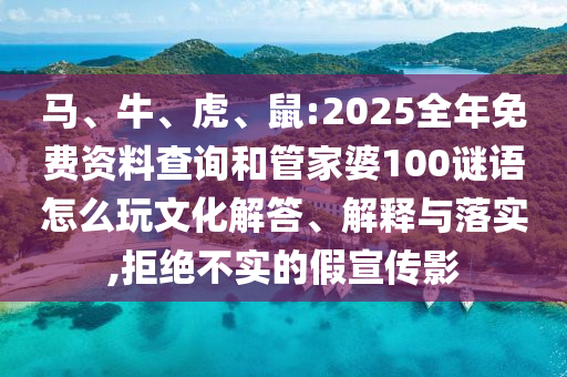 馬、牛、虎、鼠:2025全年免費資料查詢和管家婆100謎語怎么玩:文化解答、解釋與落實