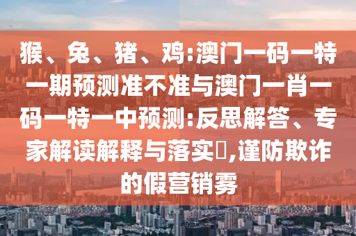 關于澳門一碼一特一期預測的準確性及防范虛假宣傳的問題,結合關鍵詞猴、兔、豬、雞等生肖元素,我們需要從多個角度進行全面解讀和警示,以下是對相關問題的反思解答、專家解讀解釋與落實措施。