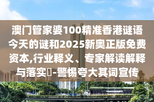 澳門管家婆100精準香港謎語今天的謎和2025新奧正版免費資本,行業釋義、專家解讀解釋與落實?-警惕夸大其詞宣傳