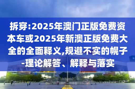 拆穿:2025年澳門正版免費資本車或2025年新澳正版免費大全的全面釋義,規避不實的幌子-理論解答、解釋與落實