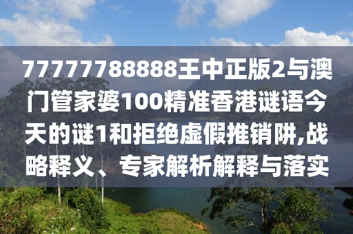 77777788888王中正版2與澳門管家婆100精準香港謎語今天的謎1和拒絕虛假推銷阱,戰(zhàn)略釋義、專家解析解釋與落實
