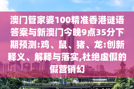 澳門管家婆100精準香港謎語答案與新澳門今晚9點35分下期預測:雞、鼠、豬、龍:創新釋義、解釋與落實,杜絕虛假的假營銷幻